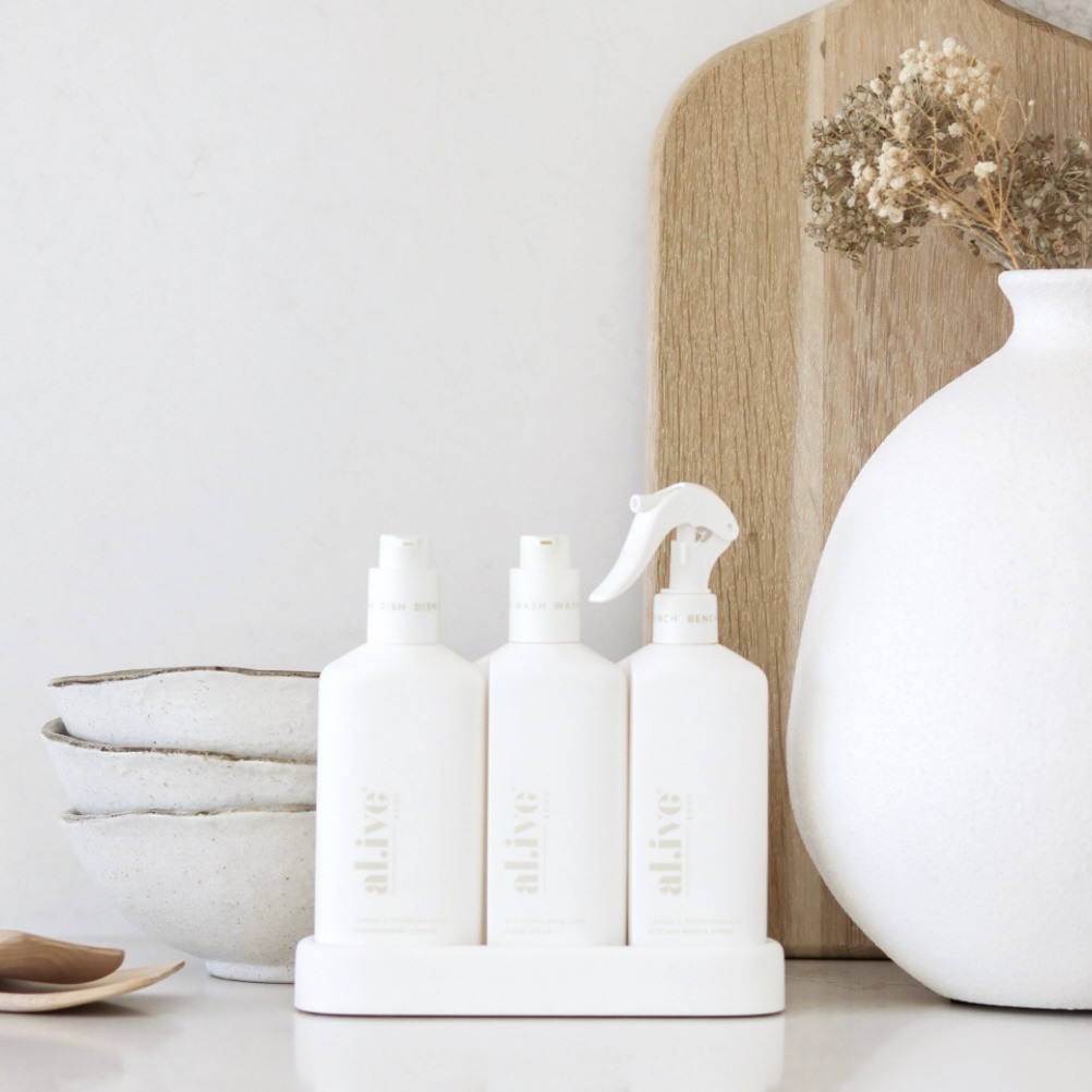 The alive body Kitchen Collection brings considered beauty to everyday routines, combining high-performance cleaning with naturally derived ingredients and signature scent blends. Designed to elevate the heart of the home, each product works hard while looking beautiful on the countertop.